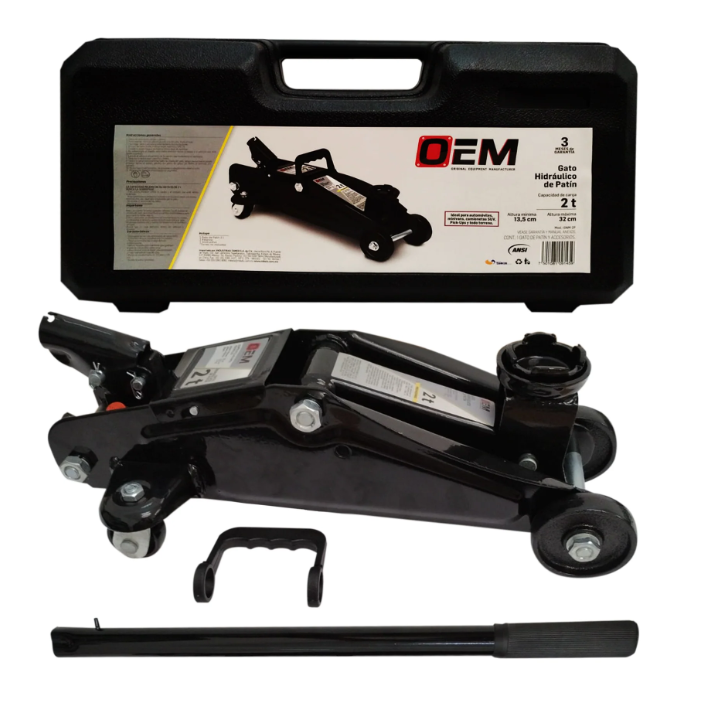 Gato de Patin OEM GNM-2P 2 Ton es una herramienta esencial en el taller automotriz y en situaciones donde se requiere levantar vehículos u objetos pesados de manera segura y controlada, diseñado para levantar cargas de hasta 2 toneladas, fabricado con materiales resistentes y duraderos, con ruedas giratorias en la parte inferior que permiten un desplazamiento suave y controlado bajo el vehículo o la carga, mango largo que se utiliza para bombear y levantar el gato, sistema hidráulico que se activa al bombear el mango. Es importante recordar que la seguridad es primordial al usar un gato de patín. Sigue las instrucciones del fabricante y nunca te coloques debajo de un vehículo sostenido únicamente por un gato.