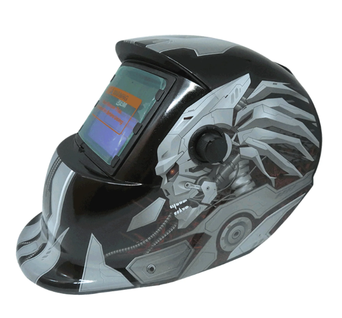 Diseño ligero, totalmente ajustable, fabricada en plástico resistente, con carga de batería mediante celda solar y sombra graduable, es un aliado para la protección de la piel del rostro y los ojos, evitando recibir radiaciones y permitiendo concentrarse en la soldadura.