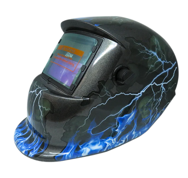 Diseño ligero, totalmente ajustable, fabricada en plástico resistente, con carga de batería mediante celda solar y sombra graduable, es un aliado para la protección de la piel del rostro y los ojos, evitando recibir radiaciones y permitiendo concentrarse en la soldadura.
