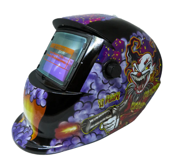 Diseño ligero, totalmente ajustable, fabricada en plástico resistente, con carga de batería mediante celda solar y sombra graduable, es un aliado para la protección de la piel del rostro y los ojos, evitando recibir radiaciones y permitiendo concentrarse en la soldadura.