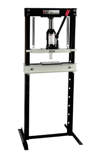 Prensa Hidráulica OEM PH12-OEM 12 Ton es una herramienta utilizada para aplicar fuerza mediante un sistema hidráulico. Esta prensa en particular tiene una capacidad de 12 toneladas, lo que significa que puede aplicar una fuerza de hasta 12 toneladas para llevar a cabo diversas tareas de prensado, sistema hidráulico para generar y transmitir la fuerza necesaria. El sistema hidráulico está compuesto por una bomba hidráulica, un cilindro y un conjunto de válvulas que controlan el flujo del fluido hidráulico, tiene una altura y ancho de trabajo que te permiten acomodar diferentes tamaños de piezas para el prensado. Estos valores pueden variar según el modelo específico, cuenta con un sistema de control y ajuste para regular la fuerza aplicada. Puede tener una manivela, una palanca o un pedal para controlar la prensa de manera precisa y segura.