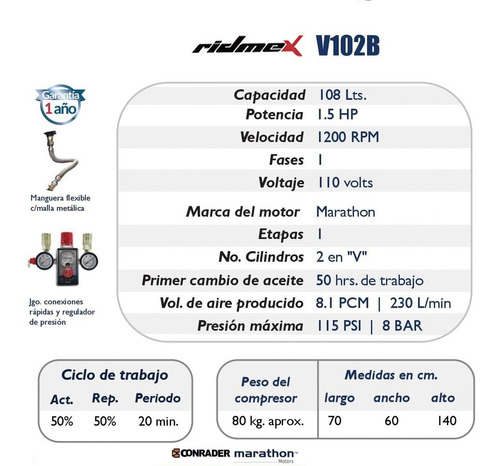 Motor 1.5hp cabezal 2hp 108L 115LBS/PULG2 Bifasico