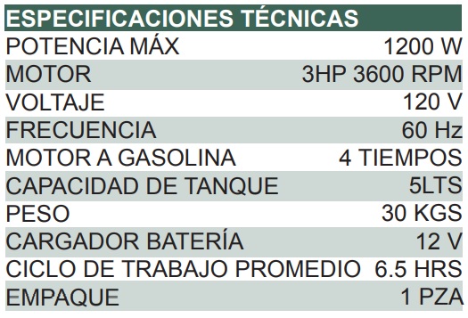Generador a Gasolina 1200 W