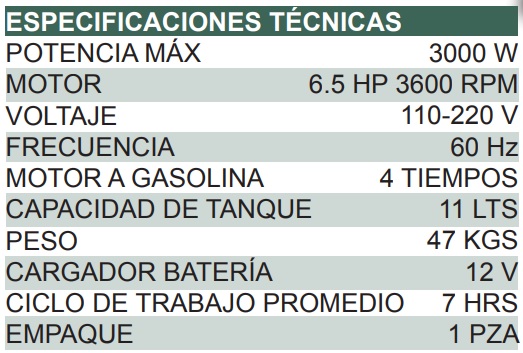 Generador a Gasolina 3000 W