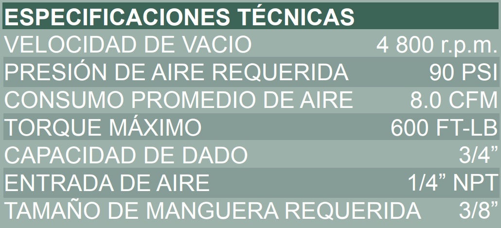 El producto real puede variar a la imagen presentada Pistola de impacto neumatica 600 ft-lb