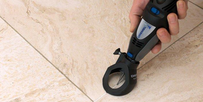 Guías separadas en 180° para mantener la broca centrada entre las baldosas.