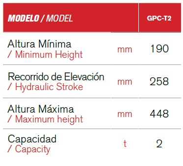 Rango de levante: 13.5 cm a 50 cmValvula de seguri