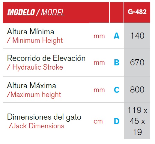 Para trabajo extra pesadoCapacidad: 3 ToneladasAlt