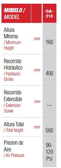 Capacidad: 5 ToneladasAltura minima: 150 mmAltura